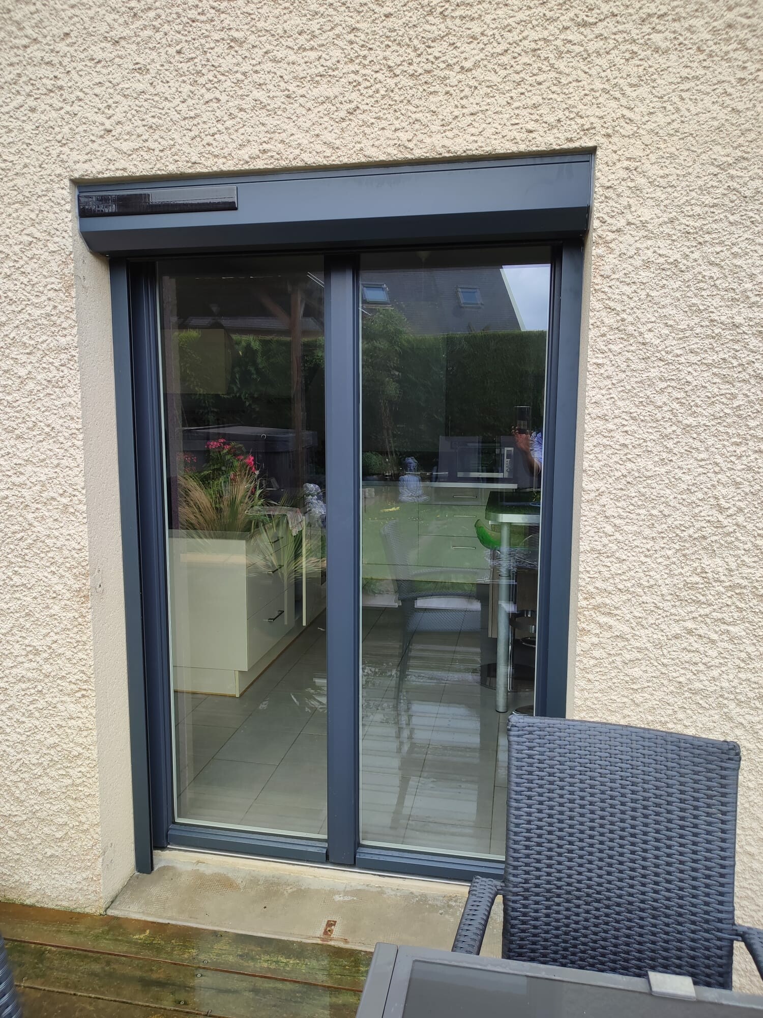Pose d'une baie vitrée avec volets roulants solaires