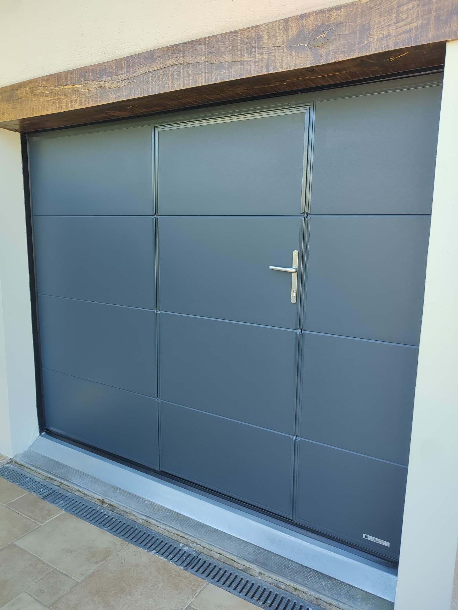 Porte de garage sectionnelle avec portillon intégré - Cesson Sévigné